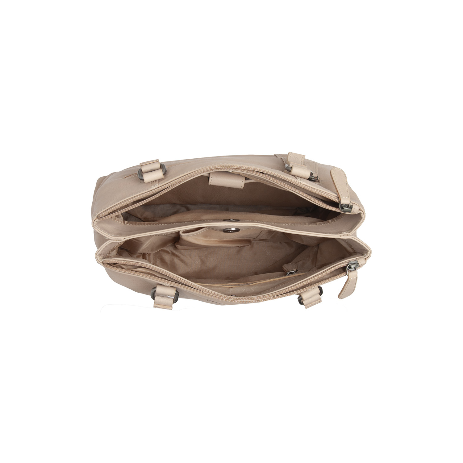 ~ patru compartimente principale, doua cu fermoar, doua cu capse