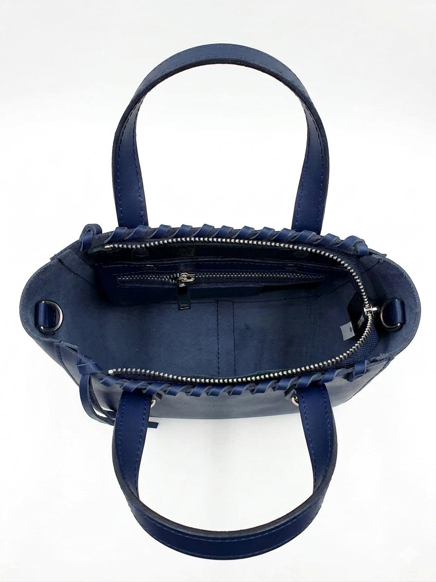 Massimo Castelli Geanta mica de mana si umar Massimo Castelli, piele naturala, Bleumarin