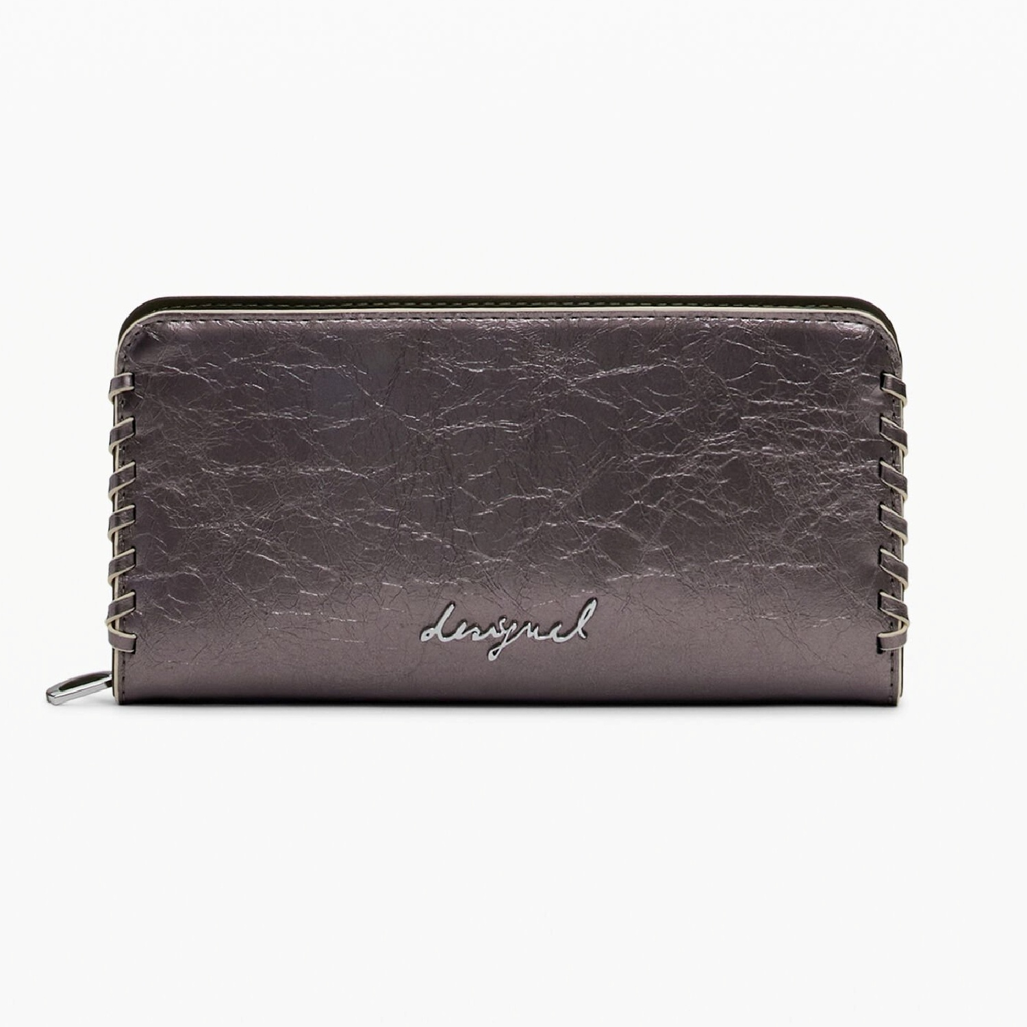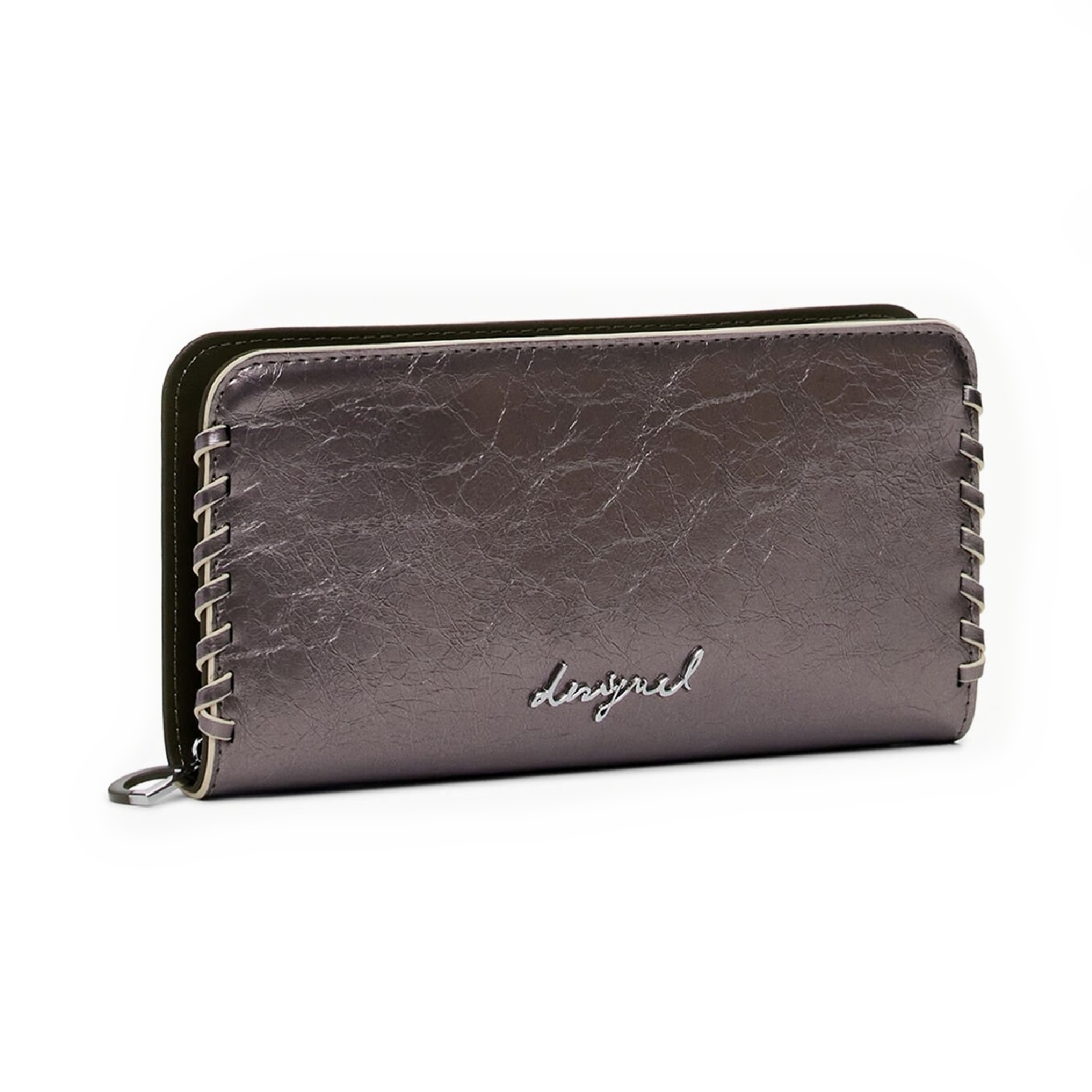 Portofel de dama, Desigual, seria Capsule Tiny, Gri metalizat