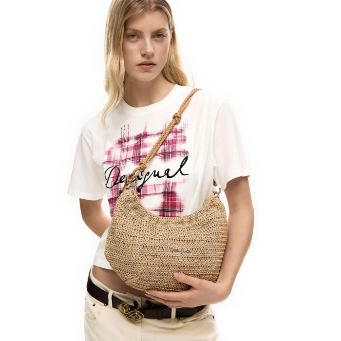 Geanta de dama, de mana si umar, Desigual, Raffia, Bej