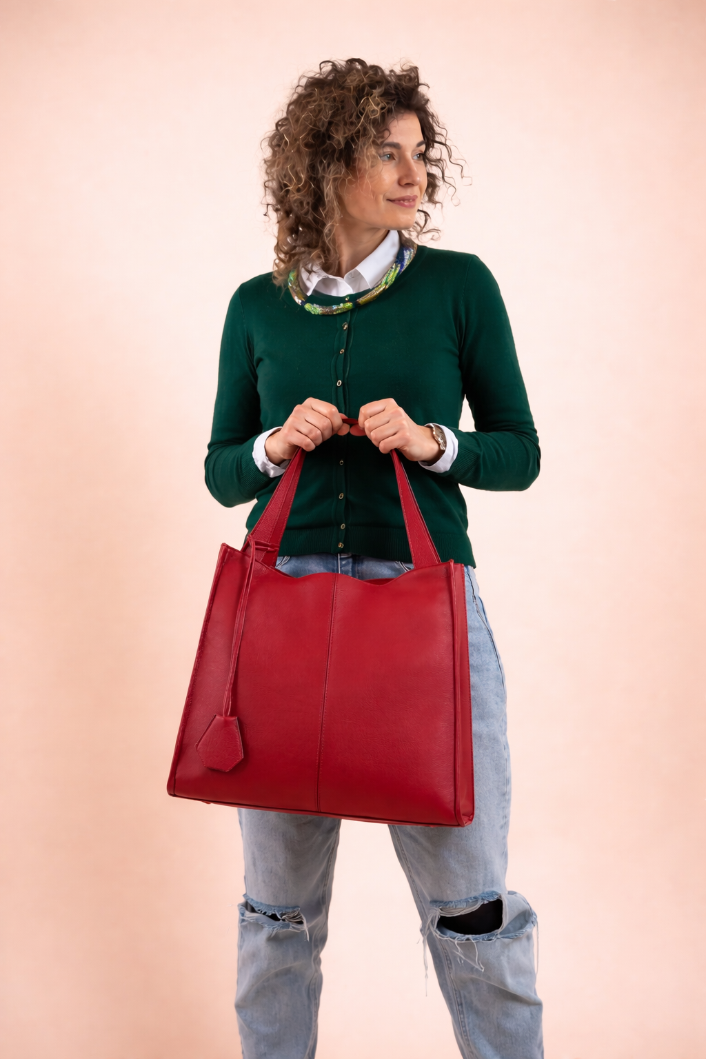 Geanta dama din piele naturala moale, model 268, de umar, Rosu